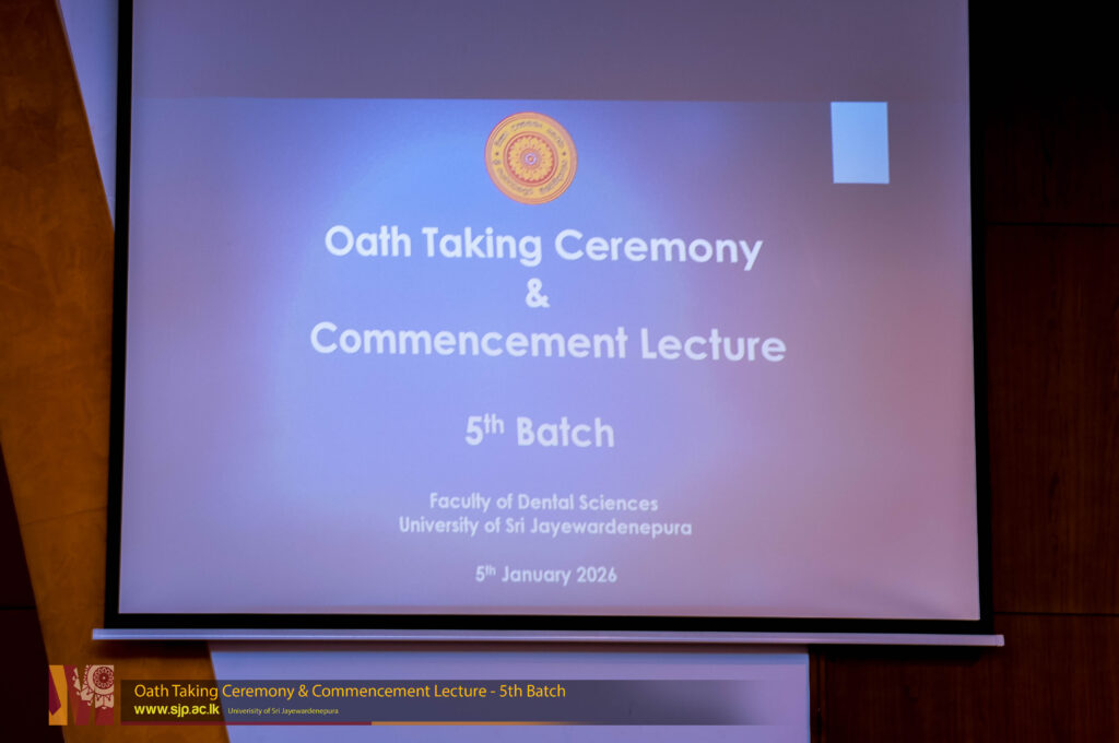 The Oath Taking Ceremony and Commencement Lecture of the 5th Batch of Dental Students of the Faculty of Dental Sciences, University of Sri Jayewardenepura, marked the official commencement of their academic journey following the Orientation Programme.